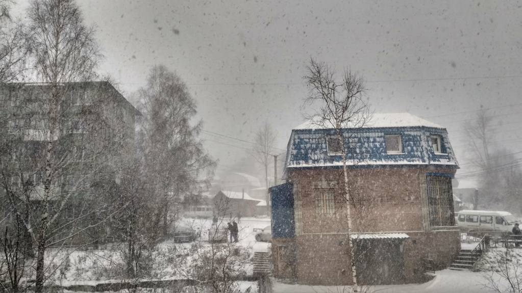 Сейчас вид из окна. Правда, телефон не так передал количество снежинок, кружащихся в воздухе.