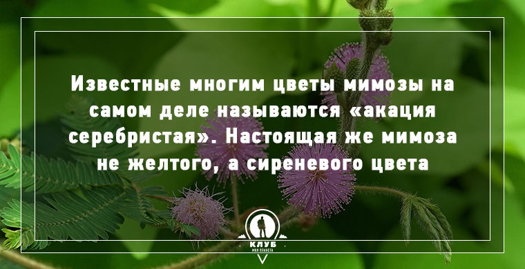 Мимоза - на самом деле акация, а то, что принято называть белой акацией - это робиния лжеакация, один из самых серьёзных сорняков Американского континента.