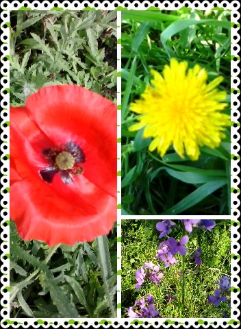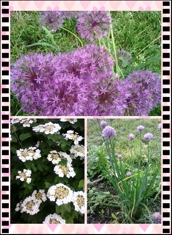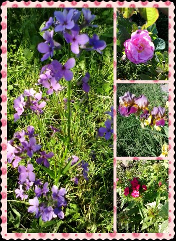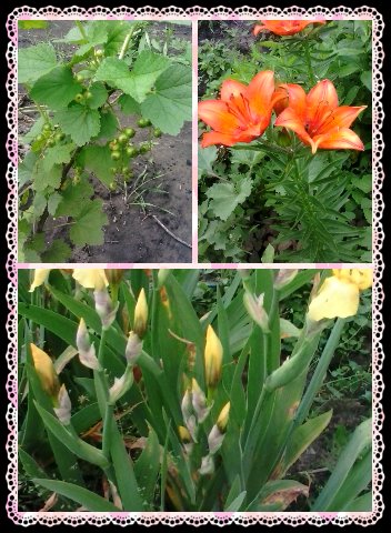 В коллаже выходит здорово, не дача а цветущий рай, а на самом деле за каждым цветочком бегаю