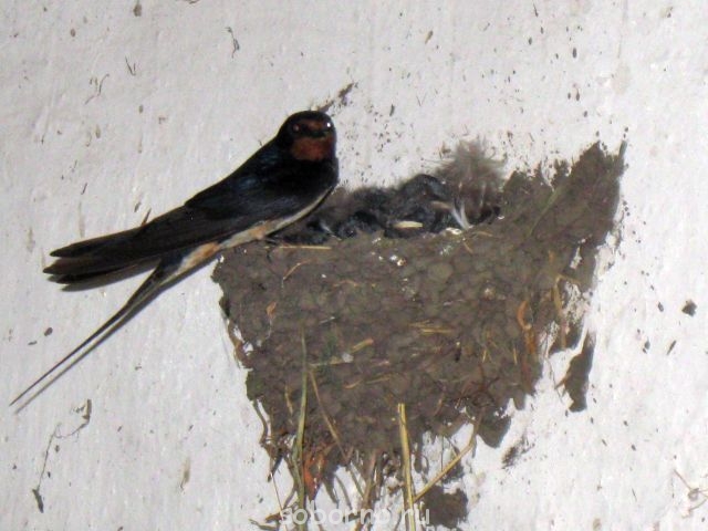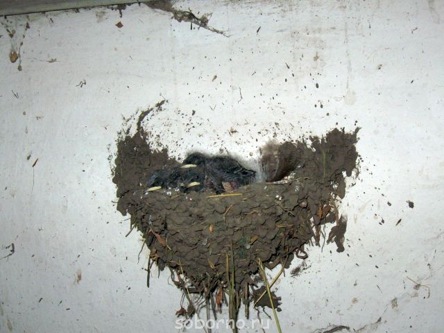 Она помогла свить там, где нужно. Молодые ласточки хотели отобрать гнездо у старых, а потом начали лепить где попало. Вот тёща и прилепила его к специально забитым в стену гвоздям, а дальше они поняли и долепили.Nikky:Даже представить трудно, как теща вила гнездо ласточкам