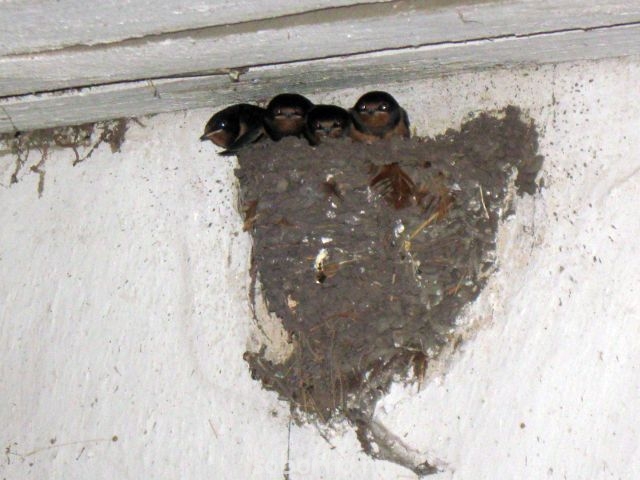 наши неделю как слетели. Дружненько так.Олександр:Ласточки, которых я вам показывал в мае, уже выросли, летают сами, но гнездо покидать не хотят.