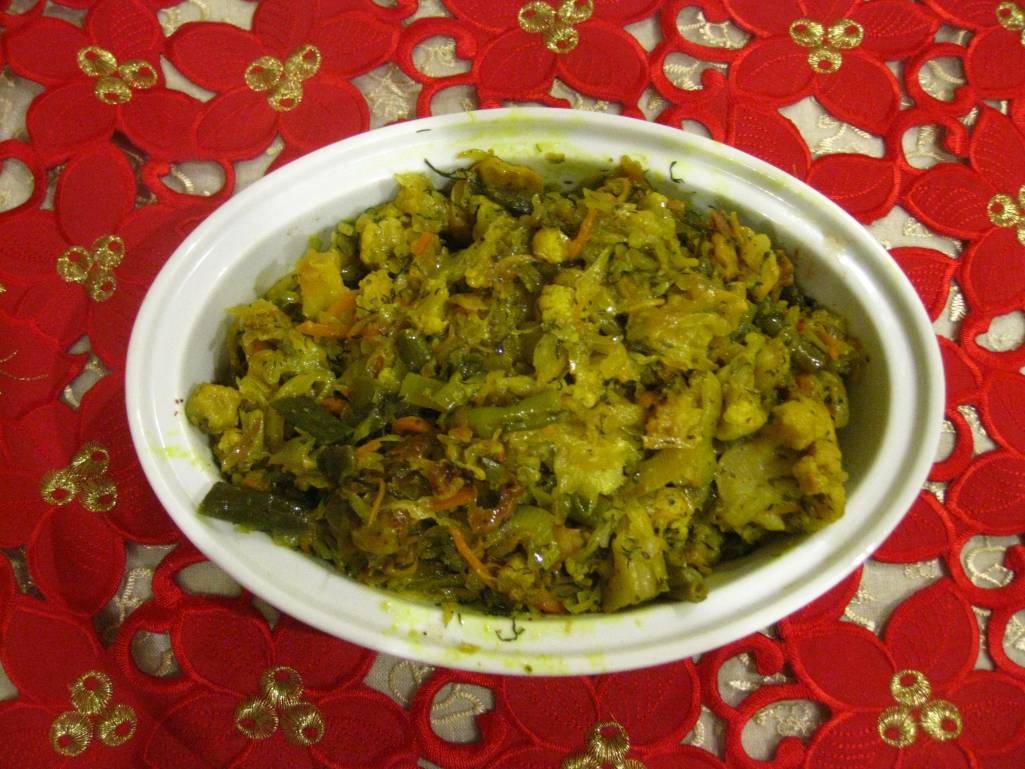 Морковь, 2 вида капусты, стручковую фасоль нарезать, отварить в соленой кипящей воде 6-8 мин, но не переваривать!