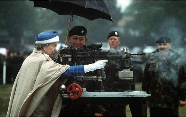 Елизавета II стреляет из Британской боевой винтовки L85, 1993 год