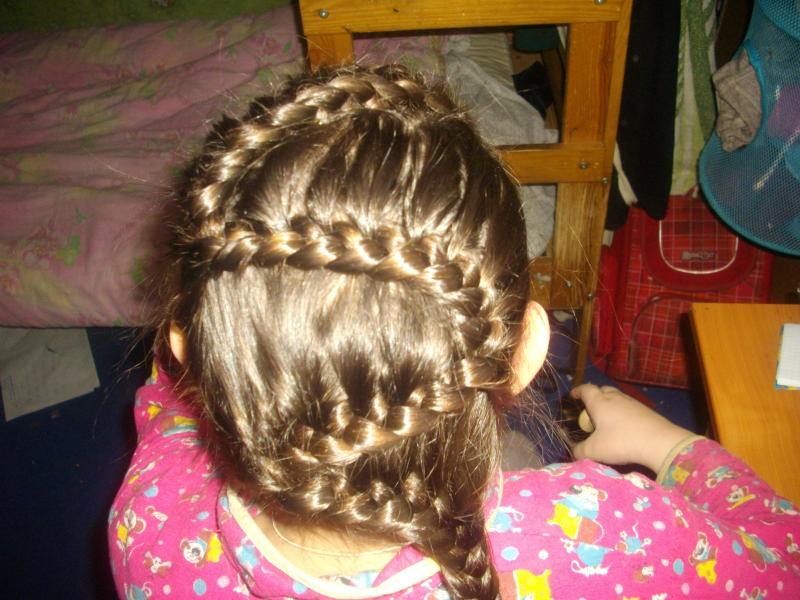 А общая откуда начинается?россияночка:Делится головка на секторы треугольные, в каждом колоском косичка, плюс обводная общая коса.