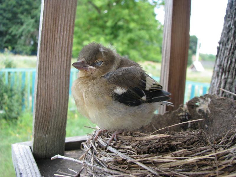 А еще когда были у кумовьев то подобрали птенчика и посадили в отвалившееся после зимы гнездо ласточек и поставили в кормушку (после кум отнес прямо с гнездом его на то есто где мы его подобрали)