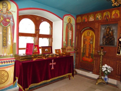 Следующие фотографии были сделаны в храме Серафима Саровского. Храм очень маленький находится под алтарной частью Иоанно-Богословского собора, в подклете. Батюшка провёл нас в храм где находится множество святынь, это храм в честь иконы Божией Матери "Скоропослушница" Среди них частицы мощей свт.Николая Чудотворца, вмч. и целителя Пантелеимона, вмч Георгия Победоносца, свтт Григория Богослова, Василия Великого Иоанна Златоуста, свт. Феофана Затворника и ещё много других Затем нас накормили в трапезной монастыря Вот ещё несколько фотографий
