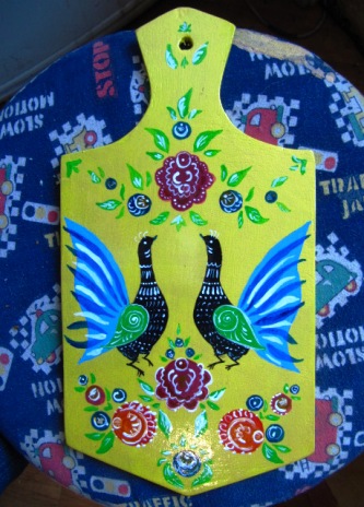 Познакомилась с городецкой росписью и захотелось попробывать её освоить. Вот что получилось