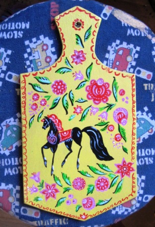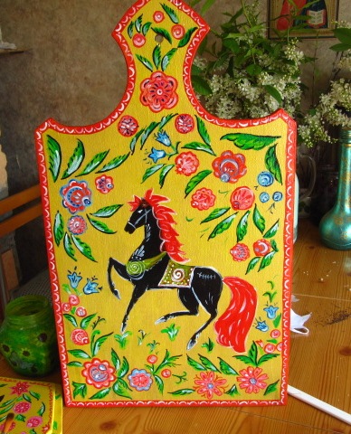 Пано "Конь с алой гривой" в стиле городецкой росписи.