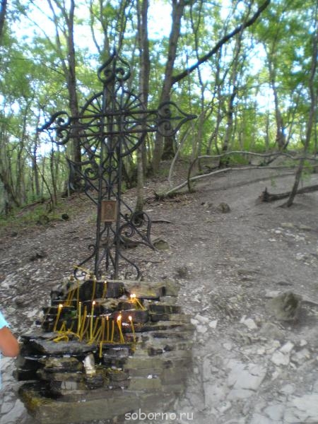 Святой Крест установлен рядом с тропой по которой ходил Св.Феодосий Кавказский ,Камень на котором по преданию ночами молился Св.Феодосий (На камень я поставил святую водичку),Тропа по которой ходил Св.Феодосий.Источник и Часовня Св.Феодосия Кавказского(Иерусалимского).