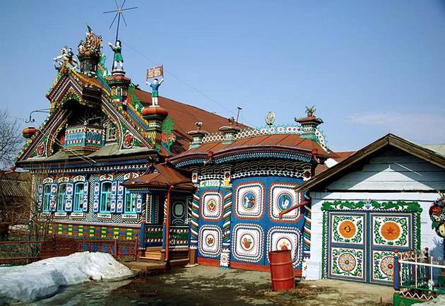 выдернутым... зашкаливающе выдернутым.. ни какого представления не дающим о наружном убранстве русских деревенких жилищ. Спору нет, были и такие , и в преизрядном колличестве на просторах Великороссии у крайне бедной прослойки .Но хватало в преизбытке и шедевров зодчества у зажиточных крестьян. Наша деревня тому подтверждение. Наш дом (200-250 лет) вообще был с одним окошком, явно крепостных бедняков, но через дорогу,напротив, просто "Кижи" в миниатюре..с балкончиками резными ,столбиками(колонами) , резными воротами и такимже полисадами!Все расписное!Марфа:прибегнем к историческим фактам