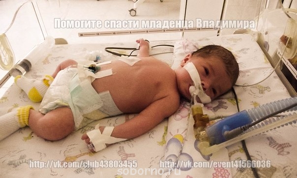 Мои друзья, история такая (кратко). 28 июля 2012 года в больнице беременная женщина потеряла сознание, врачи диагностировали клиническую смерть, сделали кесарево. Маму малыша спасти не удалось, в результате долгого кислородного голодания у ребеночка проблемы - частые судороги одновременно нескольких видов (не эпилепсия). В роддоме сразу крестили, имя младенца - Владимир (родился на праздник). Очень просим молитв домашних и в Церкви. Молитва творит чудеса.