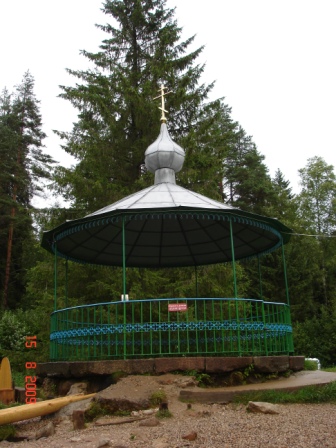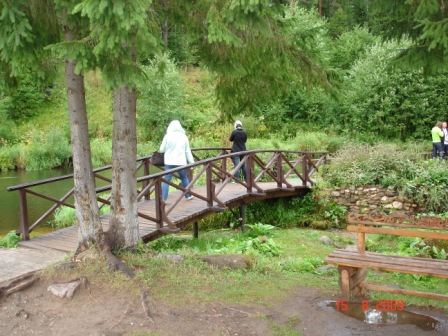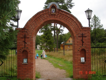 Прогноз погоды был верным, 13 градусов по Цельсию, холодный ветер, дожди. Но мы перебороли свои страхи - и в путь. Проехав около 300 км, мы добрались до места. От стоянки идут деревянные мостки, по моим прикидкам - метров 200. Ворота. Добрались! Общий вид немного сбоку и под углом. Слева встречает Оковецкая (Ржевская) икона, справа - храм, прямо - источник и купальня. За моей спиной - трапезная, дом батюшки, дом для трудников, сад/огород Добавлено спустя 48 секунд: Добавлено спустя 7 минут 23 секунды: