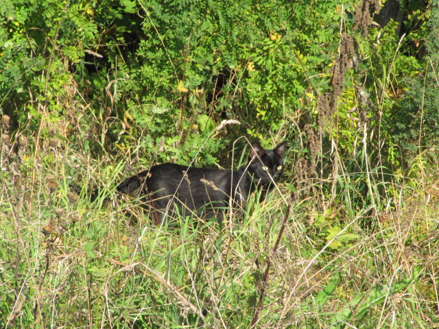 Эта чорная красавица наблюдала за нами из кустов, мы её заметили, я сфоткала а Снешка прогнала, нечего за нами шпионить