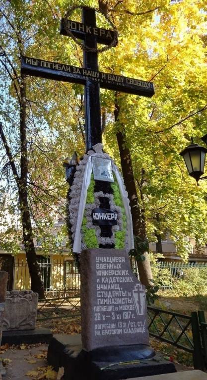 погребены юнкера, кадеты, студенты и гимназисты, погибшие во время революционных братоубийственных событий в Москве.