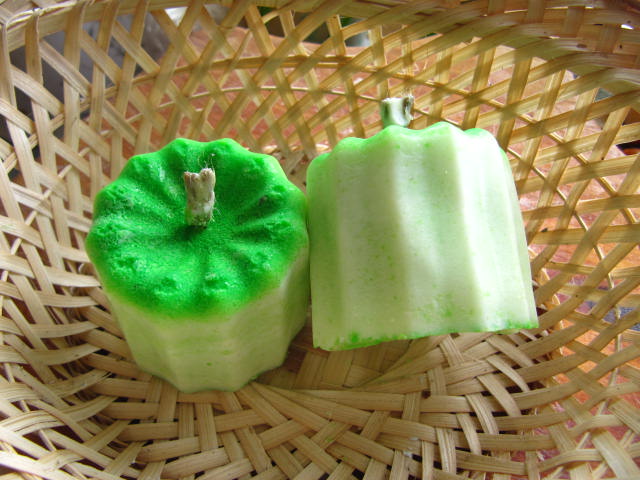 А это экспериментальные свечи из говяжьего жира со стеарином , хотела покрасить пищевым красителем в зелёный цвет а краситель во время застывания весь осел и получились свечи с зелёной шапочкой. Горят отлично! пахнут мятой ( мятный ароматизатор