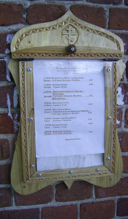 Доска расписания богослужений в нашем храме