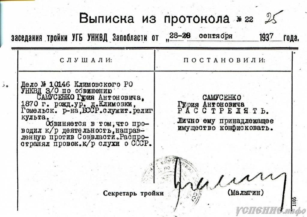 * Архив УФСБ РФ по Брянской обл., арх.-уг. Д. 8979-П.