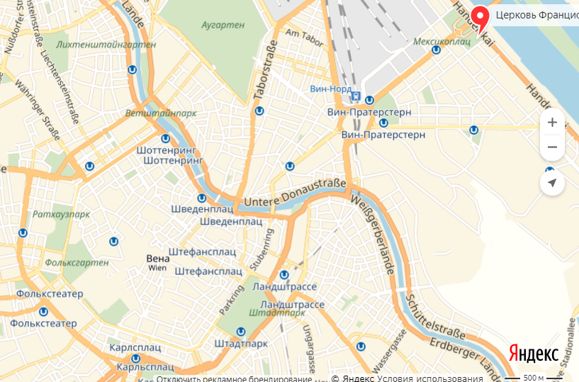 Для удобства "путешествия" буду выкладывать карту Вены с пометкой красным цветом, где этот объект. Конечно, все наиболее интересные туристические места расположены в центре.