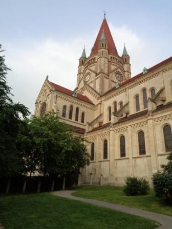 Фото из сети:Церковь Франциска Ассизского (известная также как Kaiserjubiläumskirche и Mexikokirche) — римско-католическая церковь в столице Австрийской республики Вене, в районе Леопольдштадт, по адресу: площадь Мексики, 12.