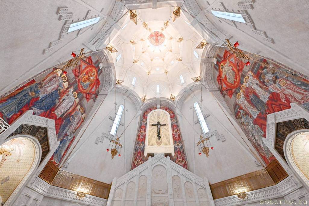 Он по-настоящему преобразил берег Москвы-реки. Фасад украшают мозаичные панно, посвящённые тысячелетней истории христианства в России. А также растительный орнамент, высеченный в камне.